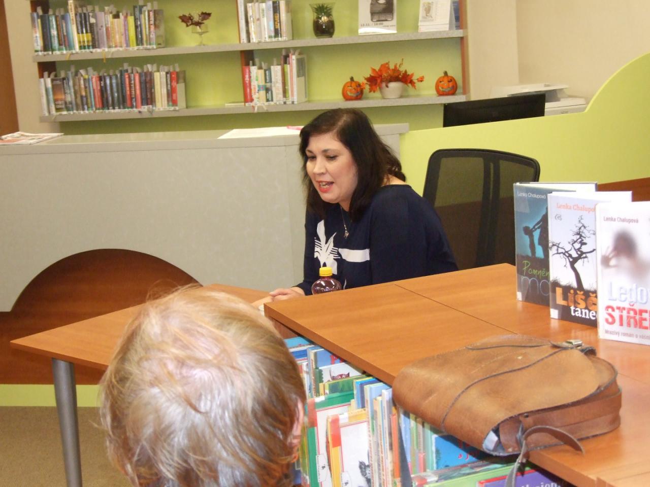 V úterý 13. 11. 2018 se v knihovně uskutečnila beseda se současnou českou spisovatelkou Lenkou Chalupovou. Je autorkou osmi úspěšných knih, poslední Liščí tanec, vyšel letos v říjnu.