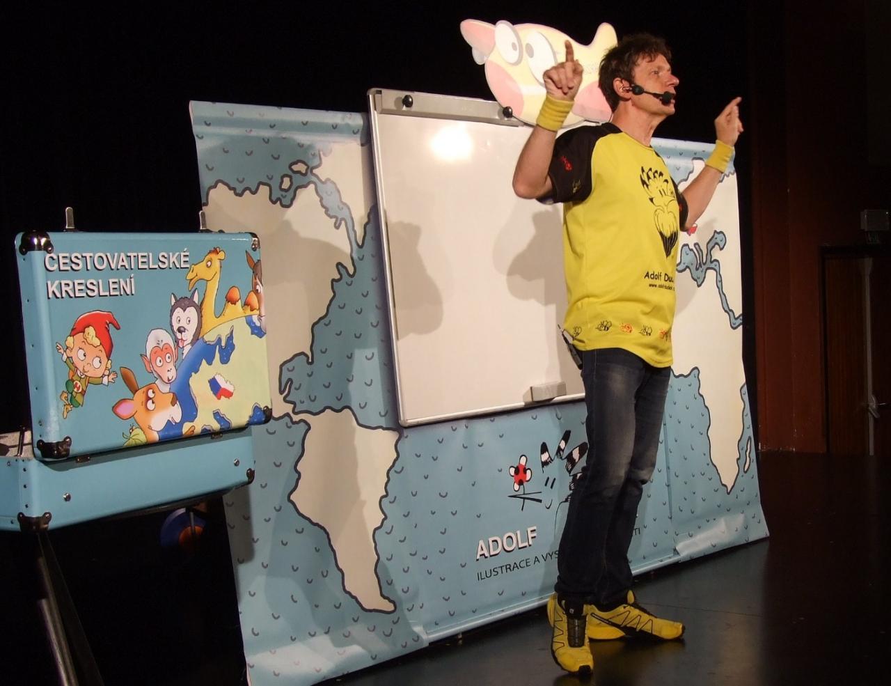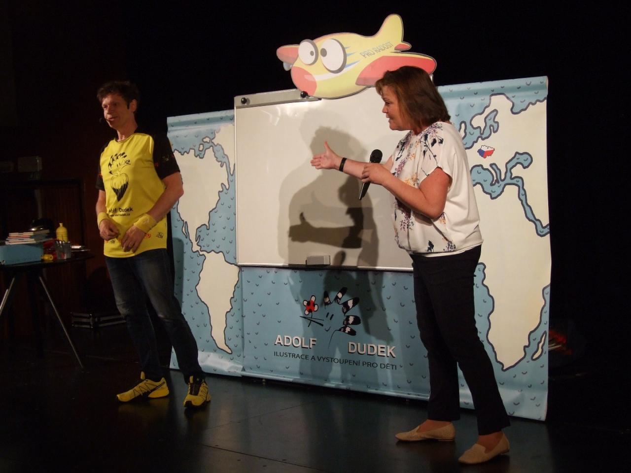Pan Dudek navštívil Napajedla již počtvrté a jako vždy, strhl všechny děti svým dynamickým vystoupením, plným elánu a aktivity. Letošní pořad nesl název Cestovatelské kreslení a prvňáčci se společně s panem malířem podívali za Eskymáky a Indiány, navštívili Afriku, Ameriku a na závěr mrkli i do Číny. Z návštěv pana Dudka v Napajedlích se stává pomalu tradice a my se všichni těšíme na příští rok, kdy se uskuteční jeho jubilejní páté setkání s prvňáky z Napajedel a blízkého okolí.