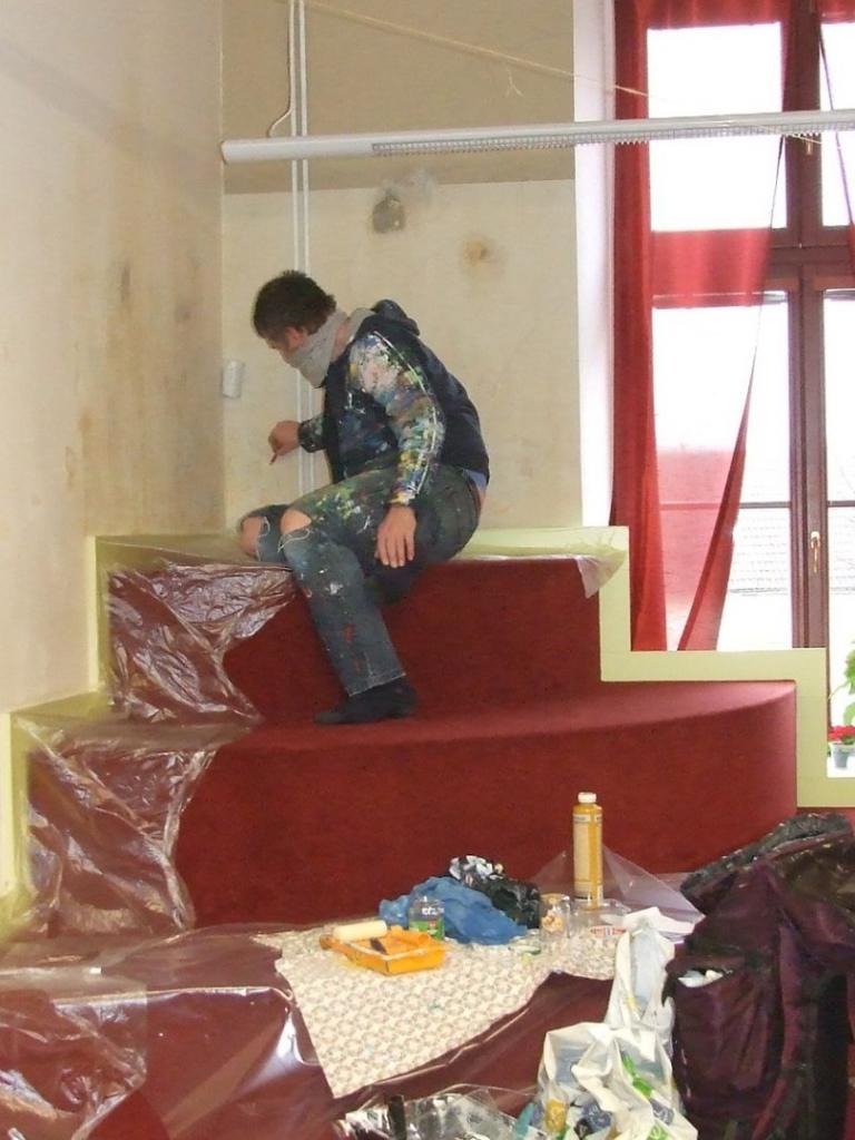 Nucenou pauzu z důvodu pandémie v běžném provozu knihovny jsme mimo jiné využili i k obnově výmalby v dětském oddělení. Samolepky nad stupínkem po deseti letech vykazovaly značné známky opotřebení. Rozhodovali jsme se mezi novými samolepkami a dekorativní malbou přímo na stěnu. Vyhrála malba.